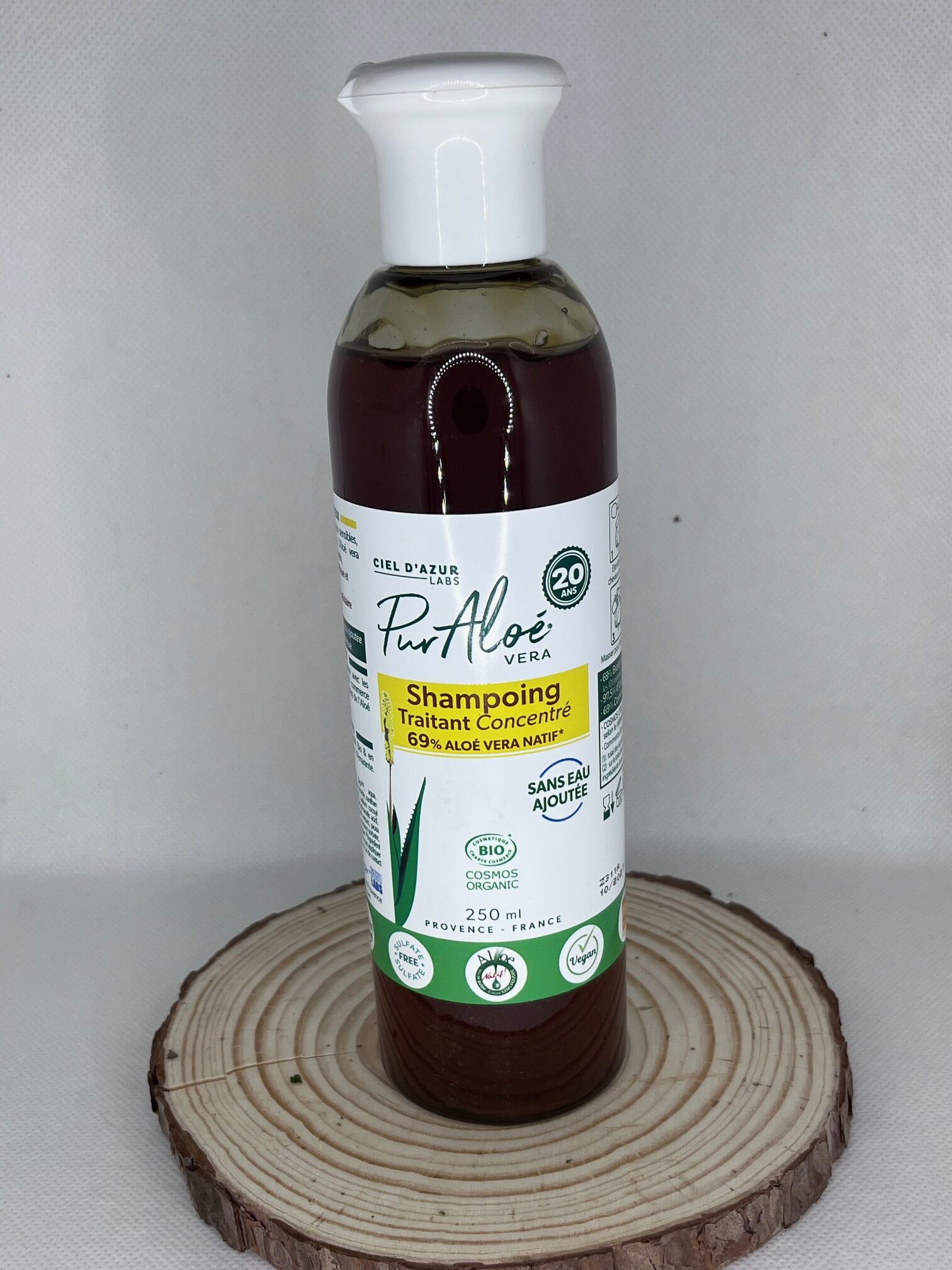 Le Shampoing Aloe Vera contient 40 à 45% d’aloe vera et 88,20% du total des ingrédients sont d’origine naturelle. Ce produit est sans parabènes, sans colorants, et sans silicones, garantissant une formulation respectueuse des cheveux et du cuir chevelu.